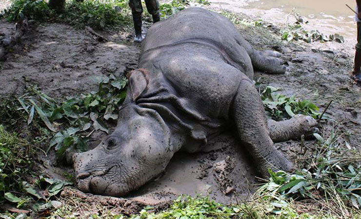 बाघको आक्रमणबाट गैँडा...