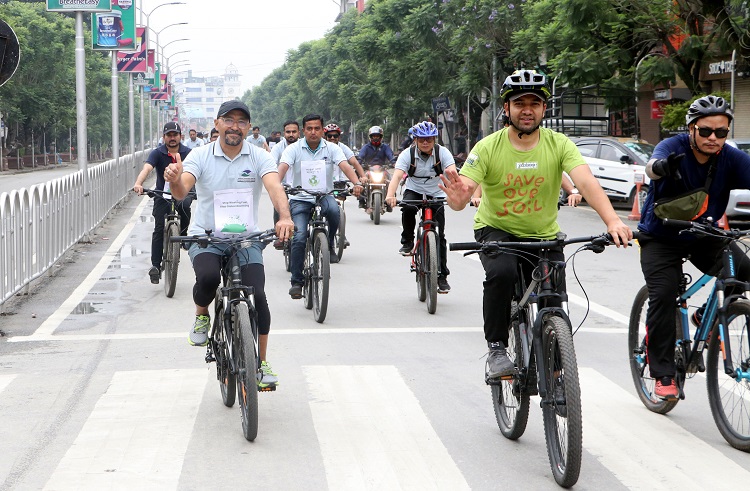 काठमाडौं। विश्व वातावरण दिवसका अवसरमा सांग्रिला डेभलपमेन्ट बैंक लि.ले “इन्धन वचाउ पृथ्वी वचाउ”, “साइकल चलाउ इन्धन वचाउ” जस्ता नाराका साथ साईकल र्यालीको आयोजना...