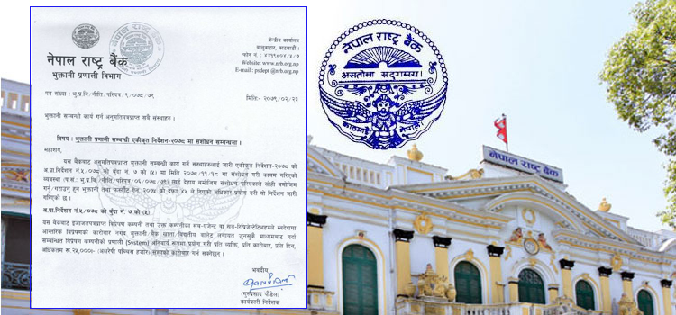 काठमाडौं । नेपाल राष्ट्र बैंकले आन्तरिक रेमिटेन्सको लागि तोकियो प्रतिदिन प्रतिकारोबार सीमा २५ हजार रुपैयाँ तोकेको छ । राष्ट्र बैंकले सोमबार परिपत्र जारी गर्दे भ...