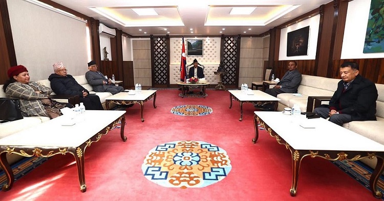 काठमाडाैं। पाँच दलीय सत्ता गठबन्धनकाे बैठक प्रधानमन्त्री सरकारी निवास बालुवाटारमा जारी छ ।